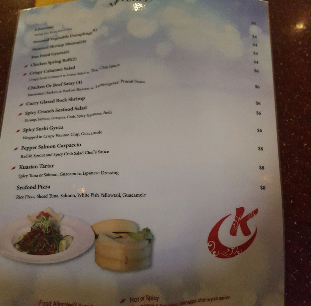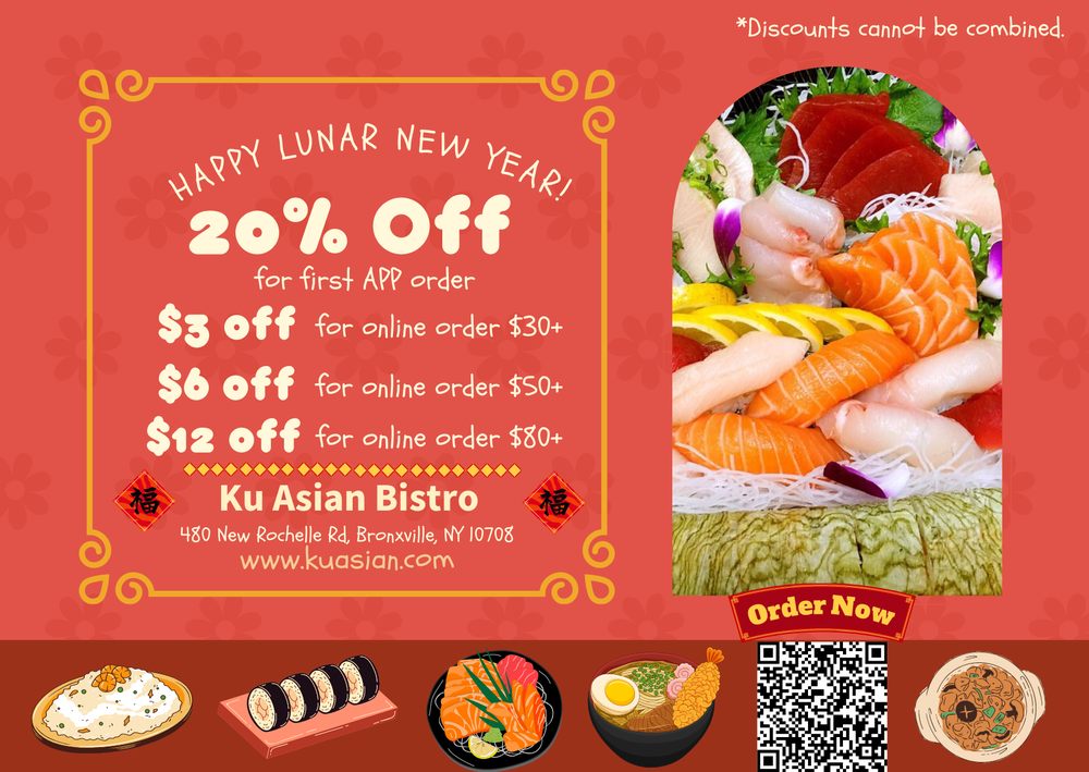 Ku Asian Bistro, located in Bronxville, NY, offers a diverse menu of Sushi, Chinese, and Asian Fusion cuisine. With vegan and vegetarian options, it caters to a variety of preferences. The restaurant provides a casual dining experience with attentive waiter service and a full bar. Customers praise the fresh and delicious food, generous portions, and welcoming service. The menu features appetizers like Edamame and Takoyaki, as well as soups like Wonton Soup and Miso Soup. Reviews highlight the quality of the sushi, crispy duck, and Tom Yum soup. While some find the prices a bit steep, the wide selection of dishes appeals to many. Overall, Ku Asian Bistro offers a satisfying dining experience with a mix of traditional and Americanized Chinese cuisine.